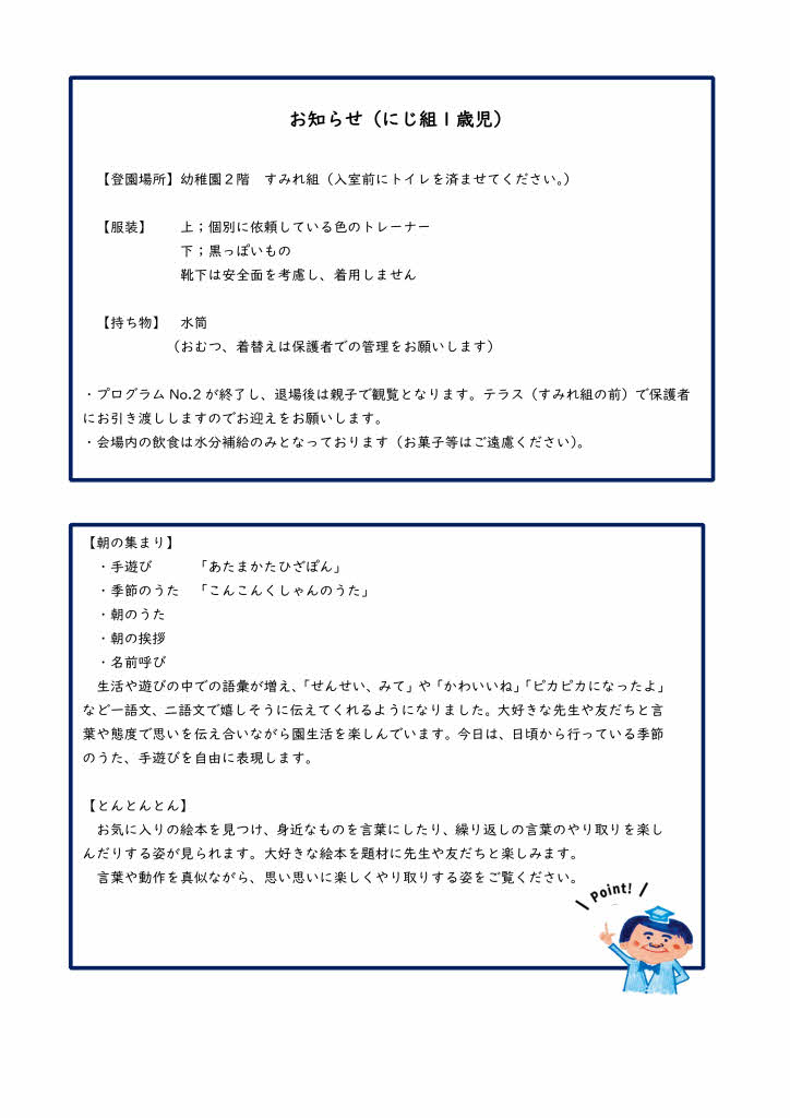 クラスページ にじ組(1歳児)